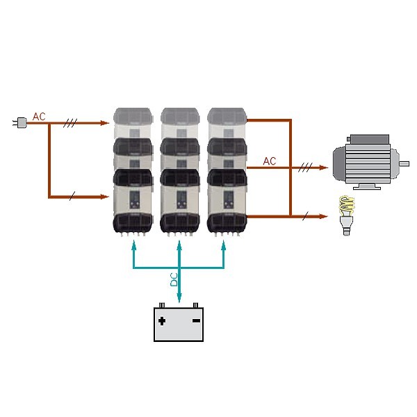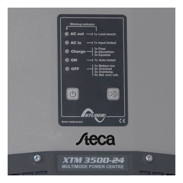 Steca XTM je zlitje vrhunskega sinusnega razsmernika, polnilnika akumualtrojev in prehodnega sistema v eni napravi. Odličen v hibridnih solarnih sistemih ali UPS sistemih. Možna vzporedna vezava večih enot.