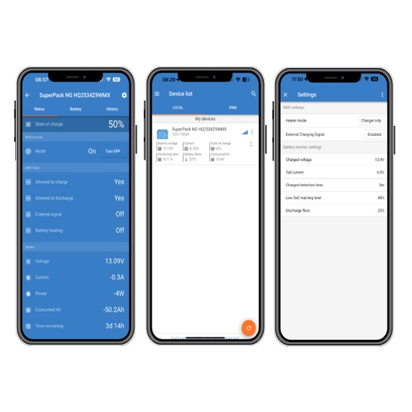 Akumulatorske baterije Victron SuperPack LiFePO4 se uporabljajo se lahko v različnih pogonskih in stacionarnih aplikacijah. Integriran sistem za upravljanje baterij BMS nenehno spremlja stanje posamezne celice v bateriji ter jo tako ščiti pred prekomernim polnjenjem, preglobokim praznjejnem in pregrevanjem. Baterije so enostavne za namestitev in ne potrebujejo nobenih dodatnih komponent.