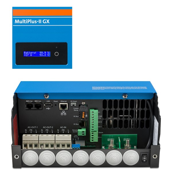 Victron Multiplus je kombinacija sinusnega razsmernika, polnilnika akumulatorjev in prehodnega sistema v eni napravi. Odličen v hibridnih solarnih sistemih, ESS samooskrbnih sistemih s hranilniki, sistemih neprekinjenega napajanja, aplikacijah v pomorstvu, prometu in na kopnem.