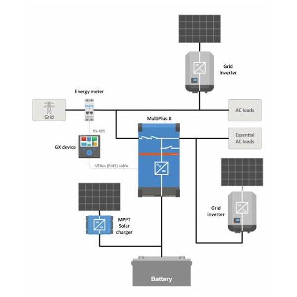 Victron Multiplus je kombinacija sinusnega razsmernika, polnilnika akumulatorjev in prehodnega sistema v eni napravi. Odličen v hibridnih solarnih sistemih, ESS samooskrbnih sistemih s hranilniki, sistemih neprekinjenega napajanja, aplikacijah v pomorstvu, prometu in na kopnem.
